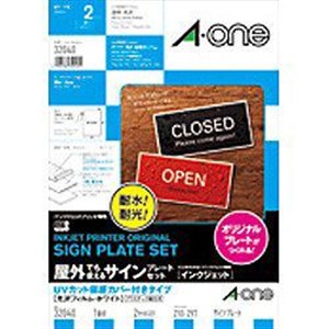 エーワン 屋外でも使えるサインプレートセット インクジェット UVカット保護カバー付きタイプ 光沢フィルム・ホワイト A4 1面 2セット入 32040