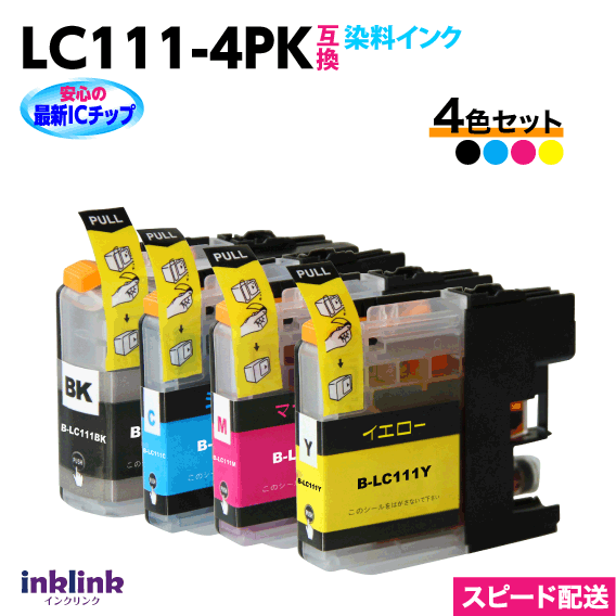 LC111-4PK 4色セット 染料インク ブラザー 互換インク プリンターインク 最新チップ搭載 LC111BK LC111C LC111M LC111Y