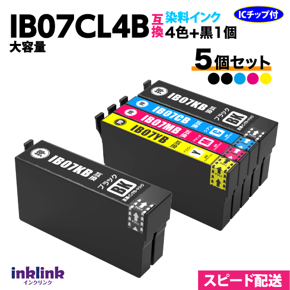 IB07CL4B 4色セット+黒1個 5個セット スピード配送 大容量 エプソン プリンターインク 互換インク IB07KB CB MB YB