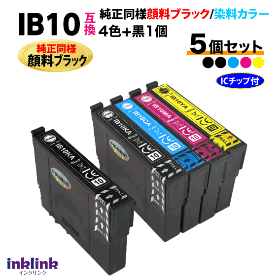IB10CL4A 4色セット+黒1個 5個セット〔純正同様 顔料ブラック〕エプソン プリンターインク 互換インク IB10KA CA MA YA