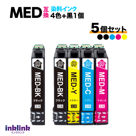 MED-4CL 互換インク 4色セット+黒1個 5個セット エプソン EW-056A EW-456A用 EPSON MED-BK MED-C MED-M MED-Y 目印 メダマヤキ