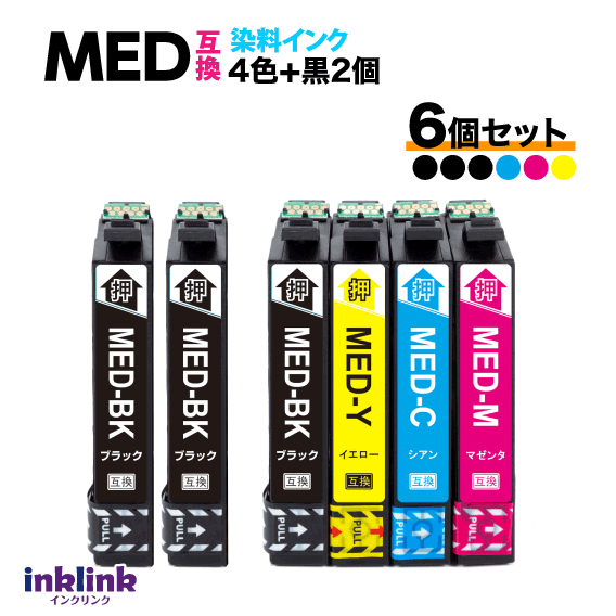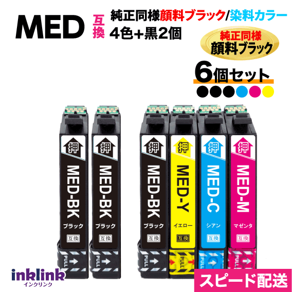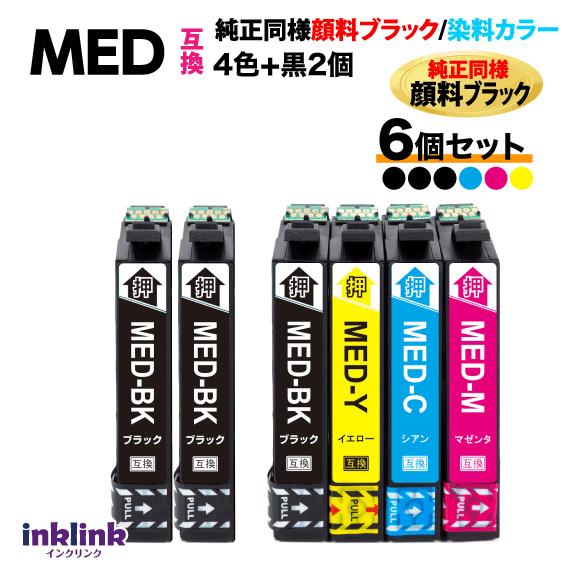 MED-4CL 互換インク 4色セット+黒2個 6個セット 純正同様 顔料ブラック〔スピード配送〕エプソン EW-056A EW-456A用 MED-BK MED-C MED-M -Y