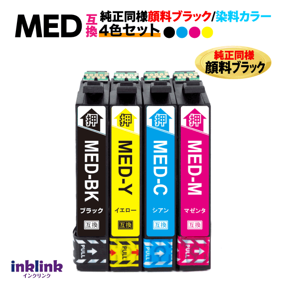 MED-4CL 互換インク 4色セット 純正同様 顔料ブラック エプソン EW-056A EW-456A用 EPSON MED-BK MED-C MED-M MED-Y 目印 メダマヤキ