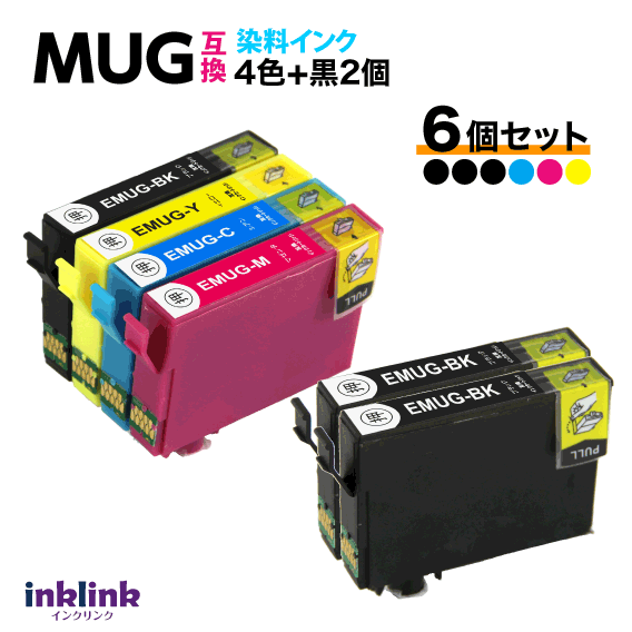 MUG-4CL 互換インク 4色セット+黒2個 6個セット エプソン EW-052A EW-452A用 EPSON MUG-BK MUG-C MUG-M MUG-Y 目印 マグカップ