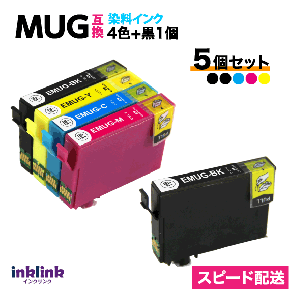 MUG-4CL エプソン 互換インク 4色セット+黒1個 5個セット〔スピード配送〕EW-052A EW-452A用 MUG-BK MUG-C MUG-M MUG-Y 目印 マグカップ
