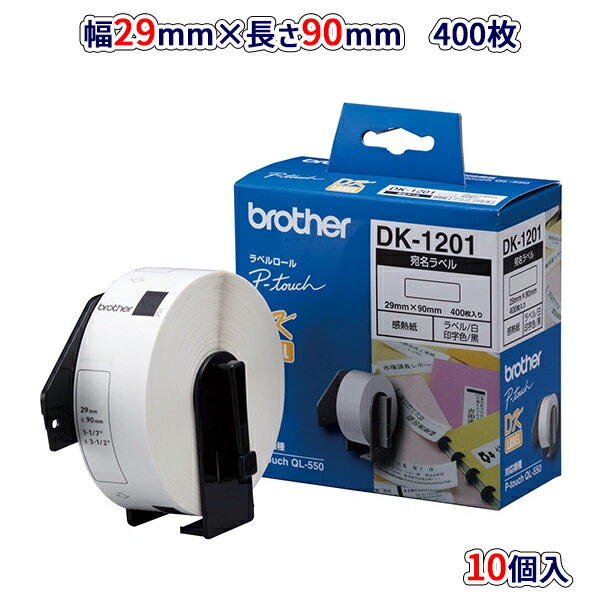 【ブラザー正規代理店】【10個セット】DK-1201-10 29mm×90mm 400枚入り QLシリーズ用 DKプレカットラベル 宛名ラベル(感熱白テープ/黒字)♪