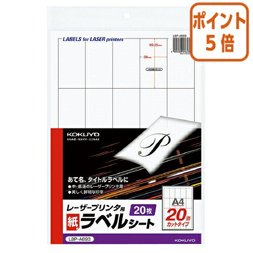 ★10月16日17時注文分よりポイント5倍★ コクヨ モノクロレーザープリンタ用紙ラベル A4 20枚入 20面カット LBP-A693