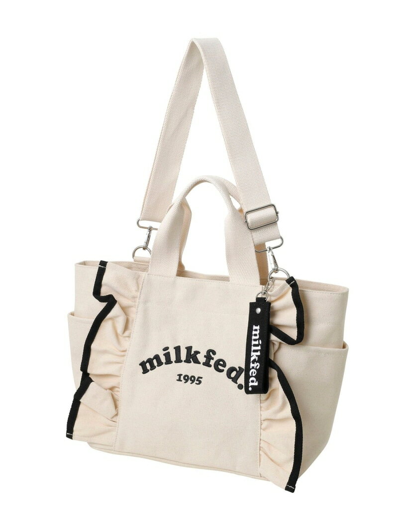 【予約商品について】 ※「先行予約販売中」「予約販売中」をご注文の際は予約商品についてをご確認ください。■重要なお知らせ※ 当店では、ギフト配送サービス及びラッピングサービスを行っておりません。ラッピング・ギフト配送について同時に複数の商品を注文された場合メーカー希望小売価格について置き配についてご利用ガイドMILKFED.(ミルクフェド)RUFFLE BAGサイドのフリルが目を惹く!女性らしいデザインが魅力の2wayバッグMILKFED. STAFF 身長:160cm***********年齢:20代前半サイズ感:A4収納できます。マチもあるので通勤通学にもおすすめです。おすすめポイント:ショルダーがついているので、ショッピングなどシーンに合わせて両手を開けられるのは嬉しい便利ポイントです。**************************■トートバッグとしてもショルダーバッグとしても使えるアイテム■ショルダーバッグにすると両手があくのでとっても便利■内側にはイヤホンやパスケース、スマートフォン等を入れるのに最適なポケット付き■底板が付いているので、型崩れがおきづらくなっています※取り外して使用可能■取り外し可能なロゴチャーム付き■生地の裏はPVCコーティングされていてハリのある素材なので、独立しやすい形状仕様メイン開閉部:マグネットボタン外側表面:サイドオープンポケット×2内側:オープンポケット×1A4サイズ収納可能●シリーズ>>>(103222053009)RUFFLE MINI BAG>>>(103231053002)RUFFLE MINI BAG BROWN>>>(103231053004)CHECKERED RUFFLE MINI BAG>>>(103231053003)MERCI OUI 2WAY BAG【MILKFED.(ミルクフェド)2022 SUMMER COLLECTION】※画像の商品は光の照射や角度により、実物と色味が異なる場合がございます。また表示のサイズ感と実物は若干異なる場合もございますので、予めご了承ください。※画像の商品はサンプルとなります。実際の商品と色味、仕様、加工、サイズ、素材等が若干異なる場合がございます。※予約商品など一部商品につきましては、生産の都合上、お届け時期が前後する場合がございます。商品コード 103222053008(店舗でお問い合わせの際には、上記品番をお伝え下さい。)サイズ/タテ/ヨコ/マチONESIZE/25/42/14.5型番:103222053008-00-009 FP3085【採寸】商品のサイズについて【商品詳細】中国製素材:綿100%PVCコーティングサイズ:ONE_SIZE※画面上と実物では多少色具合が異なって見える場合もございます。ご了承ください。商品のカラーについて