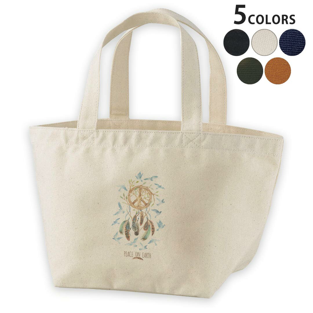 デザインランチバッグ キャンバス デイパック バッグ レディースバッグ トートバッグ ナチュラル 黒 black 011782 ドリームキャッチャー 鳥 ピース