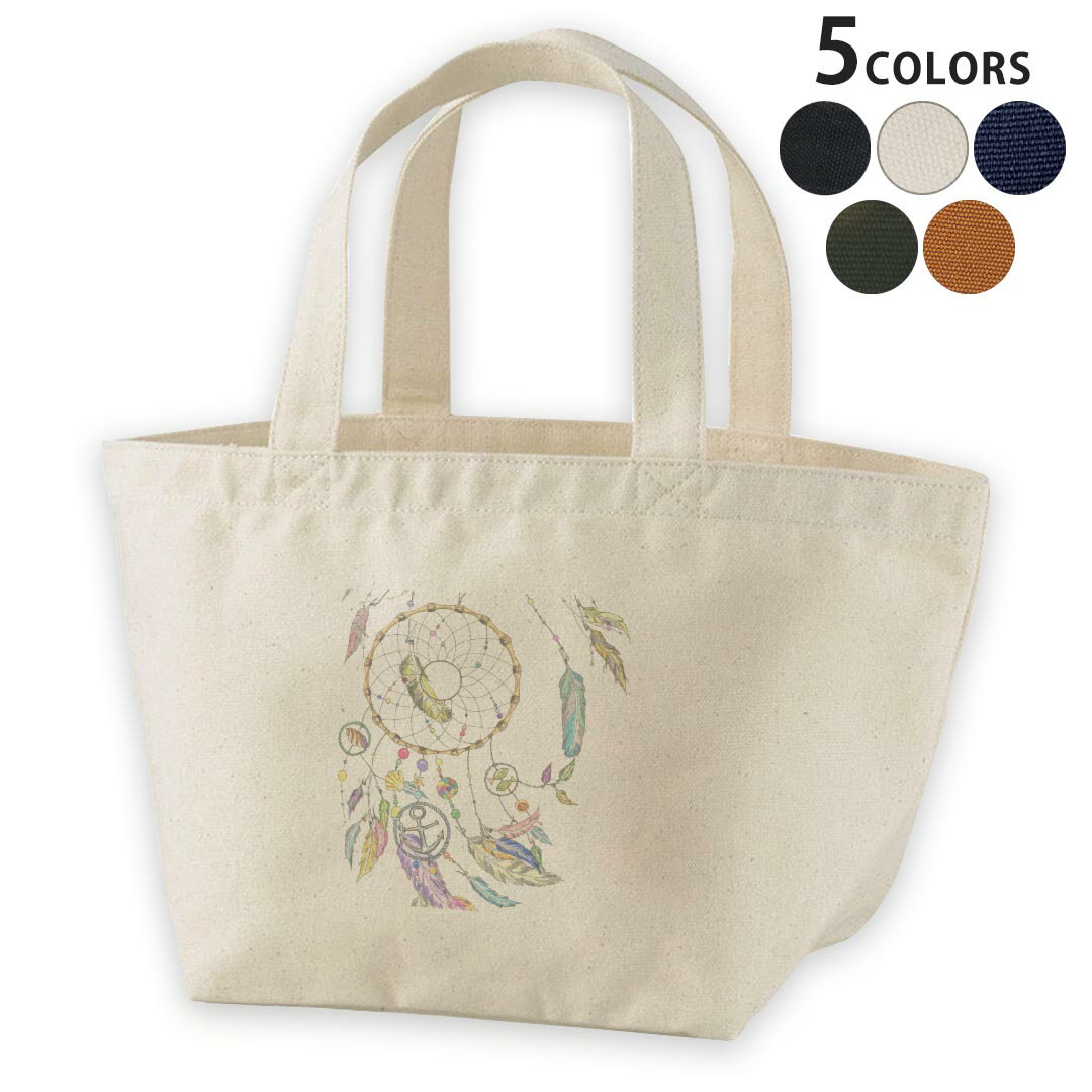 デザインランチバッグ キャンバス デイパック バッグ レディースバッグ トートバッグ ナチュラル 黒 black 010563 ドリームキャッチャー 羽 カラフル