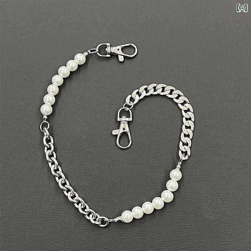 ウエストチェーン ユニセックス パール パール 切り替え メタル チェーン ヒップホップ パンク 個性的 欧米風 デニム ジーンズ パンツ用 ボディアクセサリー ストリートファッション