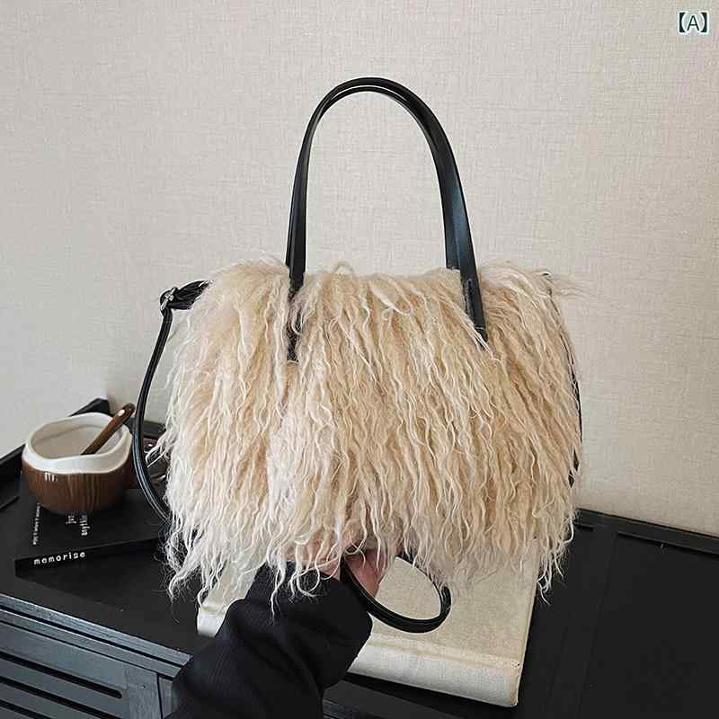 バッグ レディース フェイクムートン フェイクファー ボア トート ショルダー 肩掛け 鞄 大容量 ソフト パンク ギャルスタイル 秋冬 デイリーユース カジュアル