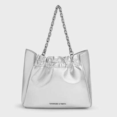 CHARLES & KEITH Brigette ブリジット ルーシュドチェーンハンドルクラッチ チャールズアンドキース バッグ クラッチバッグ ゴールド シルバー【送料無料】