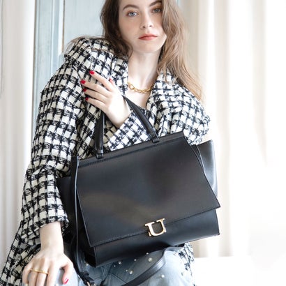 【TVドラマ着用衣装提供商品】テレビ朝日系列「フォレスト」へ衣装協力させていただきました*:+。スマートさ漂う都会的なオフィスバッグ通年使いやすいカラー展開と実用的なサイズ感で、お仕事バッグとしても人気を集めています♪両サイドを入れ込むことでフォルムが変化し、コーディネートの幅が広がるのもポイントです。■Detail■・脇マチを広げたり、内側に入れ込んだり変形可能なデザイン。脇マチを広げてもらうと商品画像のようなかっちりとしたA4ファイルが収納可。スタイルや荷物の量によって便利にお楽しみいただけます♪・肩掛け可能な2wayタイプ通勤時や、手元を空けたい時はショルダーベルトを付けて持ち歩きも楽ちん。・外側から内側に通じるファスナー付き移動中や買い物時も、スマホや財布などをさっと出し入れできて便利。・タブレット(24.5×17.5(cm))も分けて収納できる幅広いポケット。マチが広く、お弁当、長財布や500mlペットボトルが縦・横にすっぽり入るサイズ感で普段の必需品をしっかり収納できます。・洒落感あがるUのゴールド金具ゴールドのブランドロゴが光のアクセントになり、華やぎを添えてくれます。----------------------------ポケット:1(フラップ部分開いた外側)A5収納:可(※A4は形状や素材によって)付属ショルダー紐取り外し:可・調整可口開け部分:金具式底鋲:なしその他:裏側に内側に通じるファスナーあり----------------------------PUレザーとは・・・・柔らかくもちもちとした肌触りが特徴で、本革に近い見た目と質感の合皮/合成皮革(フェイクレザー)です。本革製品のような特別なお手入れは必要ありません。耐水性に優れていることが特徴ですが、雨などの水分や夏の日の汗などで汚れてしまった際には、やわらかい布で拭き取っていただくなど簡単なメンテナンスを行っていただけるとより長持ちさせることが可能です。※アルコールなどが含まれる溶剤は劣化を早めることに繋がりますのでご注意ください。【 U(ユー)】デザイナー Yuko Ohashiの琴線にふれインスピレーションされたマテリアルや手仕事を形にした作品です。ノアール(フランス語で黒)大人の女性を最も美しく見せる色をメインに、キラキラした人生がさらに美しく輝くための手段をご提案します。あなたの輝きが周りを華やかに、Yuko Ohashiと共に皆さんと楽しんでいくブランドです。Histoire/イストワール※画像の商品はサンプルです。実際の商品と色味、仕様、加工、サイズ、素材等が若干異なる場合がございます。※商品画像は、光の当たり具合やパソコンなどの閲覧環境により、実際の色味と異なって見える場合がございます。予めご了承ください。※末永く愛用頂く為に、アテンションタグ・洗濯ネームを必ずご確認の上、水濡れ(雨、汗など)による使用も色落ちや色移りの原因となる場合がございますので、取扱いには充分ご注意ください。※アルコールや塩素系などの消毒・除菌液が製品に付着すると、色落ちや変色・シミが発生する場合や劣化を早める原因になりますのでご注意ください。FREE : 【重さ】690g / 【高さ】27cm / 【幅】32cm / 【底マチ】14cm / 【持ち手高さ】13.5cm / 【ショルダーストラップの長さ】89-113cm別カラーはこちら! ベージュ(トープ) ブラウン(キャメル)