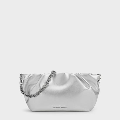Brigette ブリジット ルーシュドチェーンハンドルクラッチ (Silver)