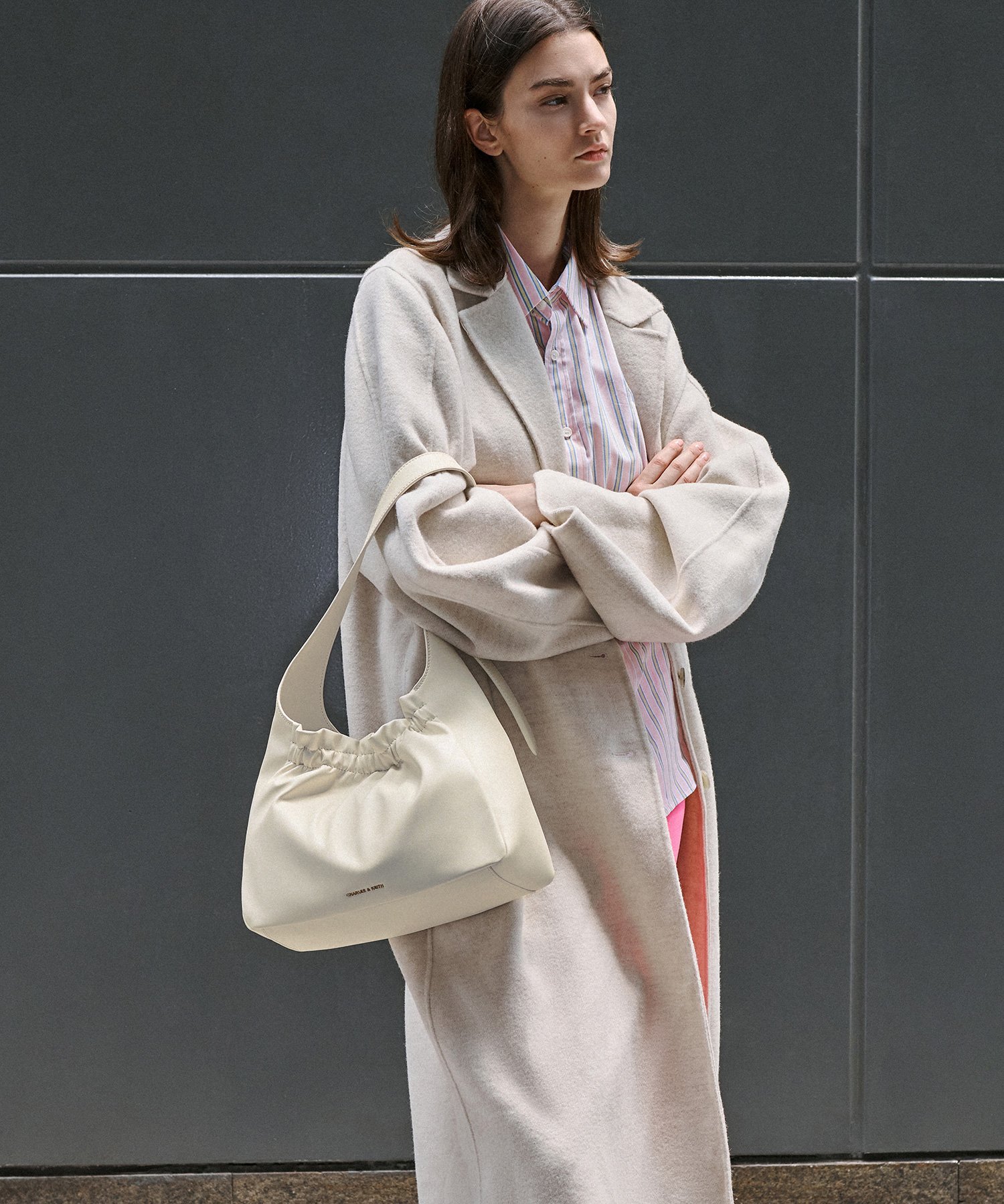 CHARLES & KEITH Brigette ブリジット ルーシュドホーボーバッグ チャールズアンドキース バッグ ショルダーバッグ ブラック グリーン ホワイト【送料無料】