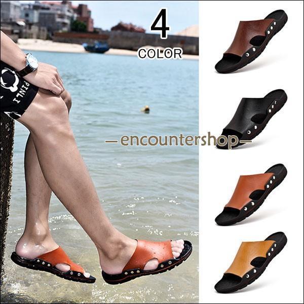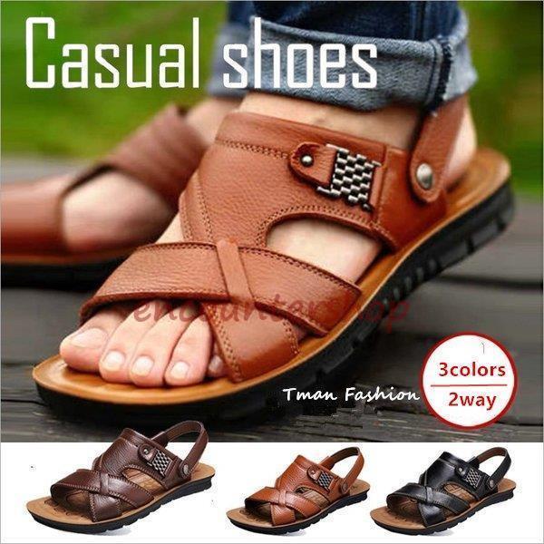 サンダル メンズ スリッポン レザー おしゃれ サンダル ローマグラディエーター ビーチサンダル 夏 リアルレザーサンダル 春夏 2way フラット スポーツ