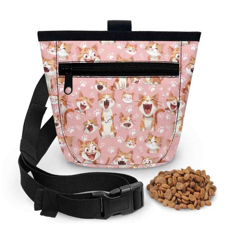 ショルダーバッグ ペット おやつ スナック トリーツ 収納ポーチ お散歩 お出かけ かわいい 猫柄 斜め掛け 軽量 ポリエステル ペット用品 おもちゃ 給水ボトル うんち袋 小物入れ 多機能