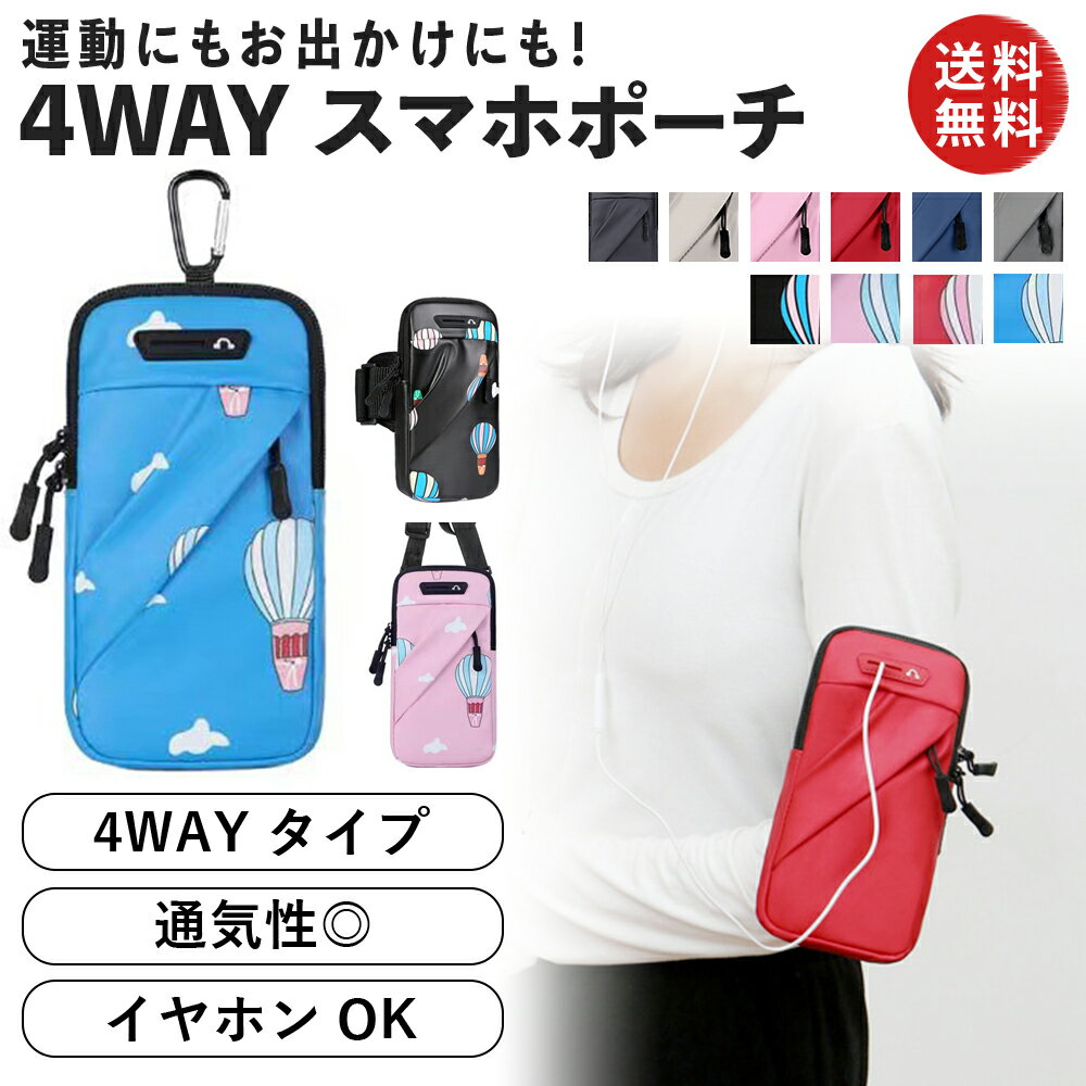 4WAY スマホポーチ アームポーチ 腕 手首 斜め掛け 肩掛け スマホホルダー スポーツ 防水 ポケット タッチパネル 軽量 軽い リストバンド ランニングアームバンド スポーツ ランニング ウォーキング 登山 作業用