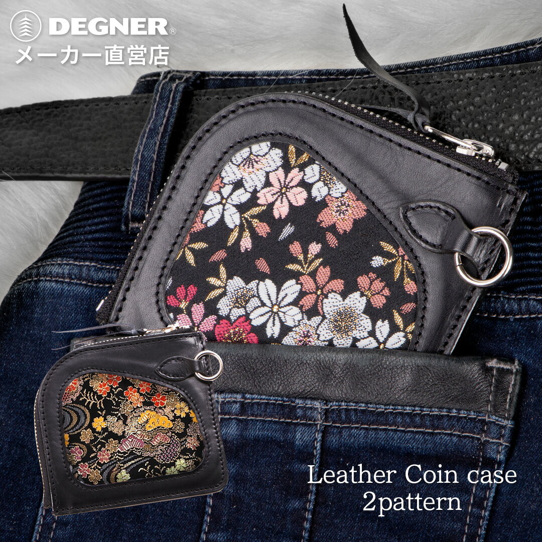 デグナー DEGNER【公式】花山レザーコインケース 京桜-ブラック/流水雪輪-ブラック 牛革 金襴織物 バイク W-85K