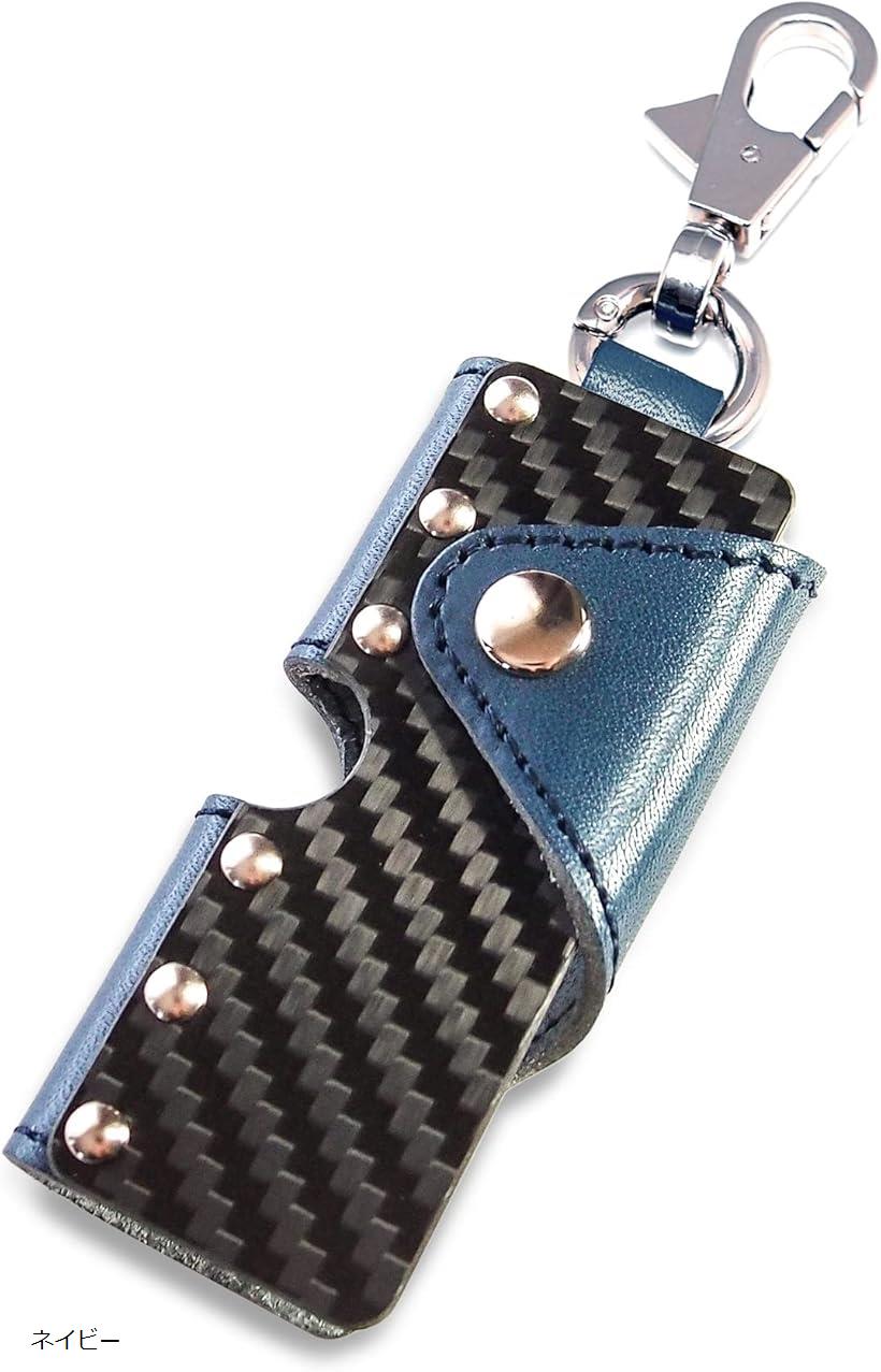キーケース メンズ コンパクト ネイビー 栃木レザー カーボン カラビナ付き 本革 車 バイク (ネイビー, Free Size)