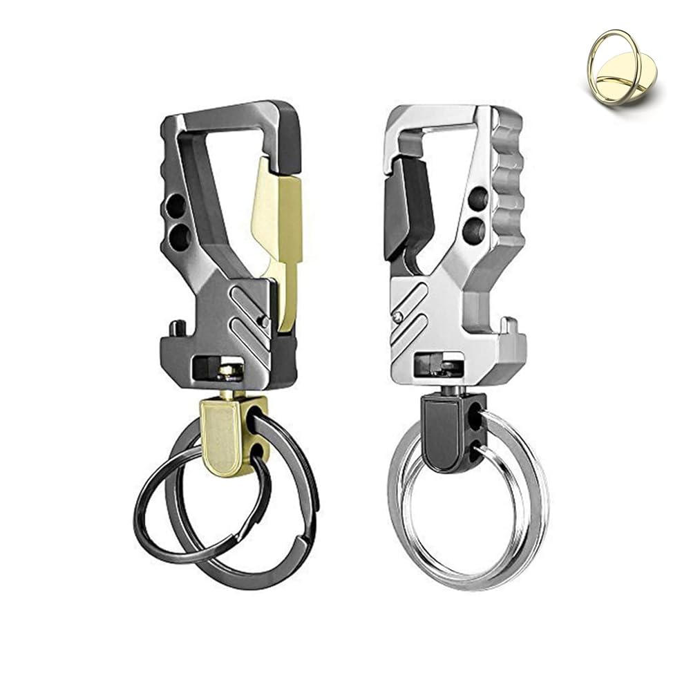 キーリング キーホルダー 亜鉛合金製 カラビナ付き 鍵収納 車 バイク メンズ おしゃれ ボトルオープナー機能付き 2個 スマホリング ホルダー 1個