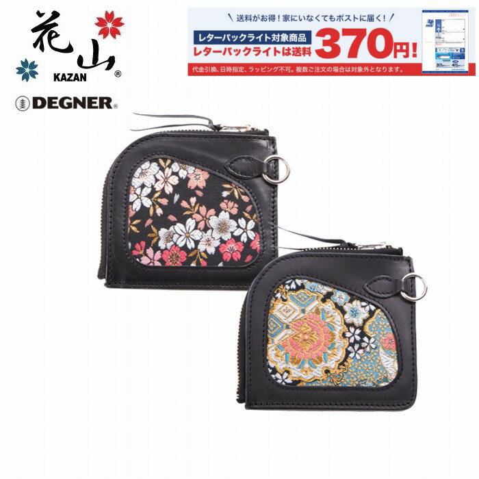 デグナー DEGNER【公式】花山レザーコインケース 京桜-ブラック/流水雪輪-ブラック 牛革 金襴織物 バイク W-85K