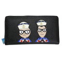 DOLCE&GABBANA D&Gドルチェ&ガッバーナ ドルガバメンズ小銭入れ付きラウンドファスナー長財布眼鏡をかけた男性2人 軍服 伯爵シェフ 計算 型押し牛革 ブラック デザイナーズ 80999BK