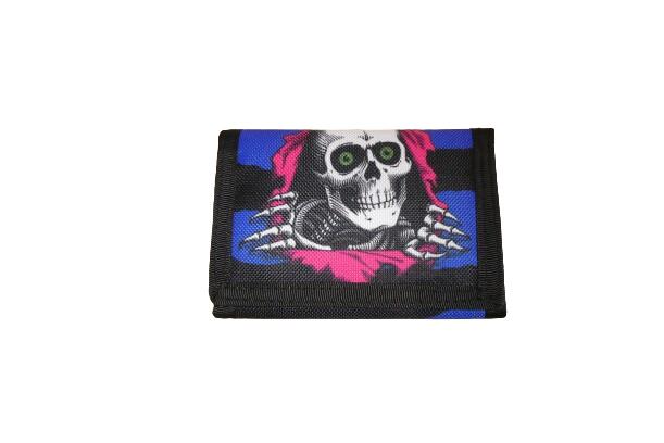 素材 ポリエステル420D サイズ (コンパクト時)約12.5cmx8cm (オープン時)横約25cm 特徴 POWELLからリッパースカルのプリントされたウォレット。定期券やICカード等も収納可能なので通勤、通学はもちろんフェスやライブなどのイベント時にも大活躍間違いなしです!お札はもちろんジップポケットも付いているので小銭も収納可能!安定のマジックテープ仕様で開け閉め楽々! 注意 お使いの PC環境やモニターの発色の具合によって実物とは多少色が異なって見える場合もございます。ご了承ください。