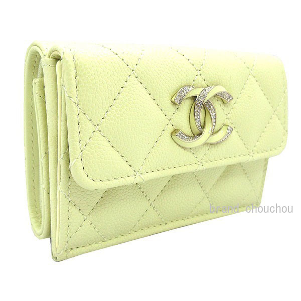 ≪新品≫ CHANEL シャネル23年春夏コレクション マトラッセ フラップ スモールウォレット 財布 ミニ キャビア ライトイエロー ゴールド金具 ラインストーン Big CCマーク AP3338 B10738 NN289 small fiap wallet Light Yellow Gold 箱 リボン カメリア ラッピング ココ