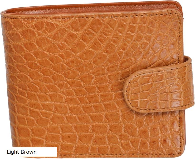 クロコダイル 2つ折り 財布 スナップ付き ミニ財布 (Light Brown)
