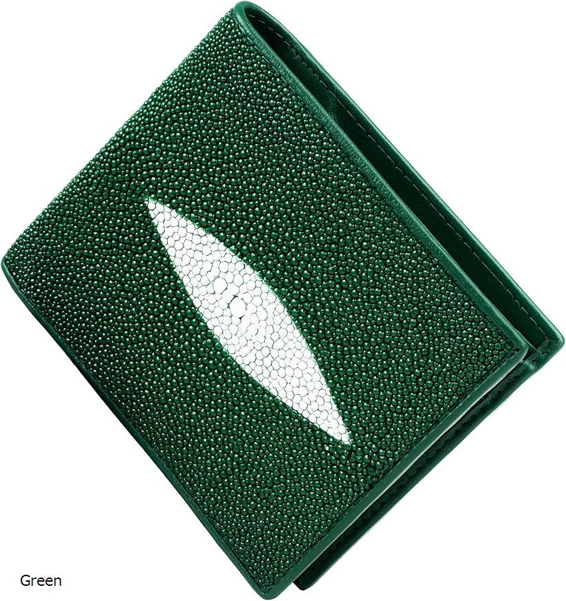 Thai Sawadee 財布 スティングレイ ミニウォレット 二つ折り 短財布 エイ革 スリム メンズ レディース 本革 Light green Pink Red Orange Brown Green