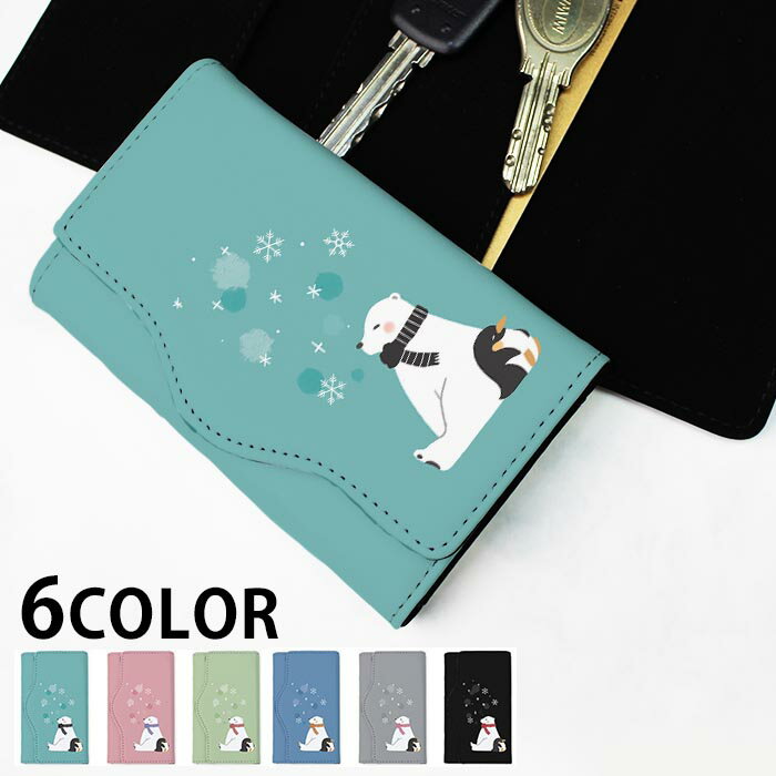 キーケース レディース メンズ 白熊 シロクマ ペンギン 冬 雪 スノー マフラー 4連 キーホルダー スマートキー かわいい 鍵入れ キーリング キーチェーン カード入れ 鍵 フェイクレザー 合皮 プリント 可愛い カッコイイ メール便 送料無料