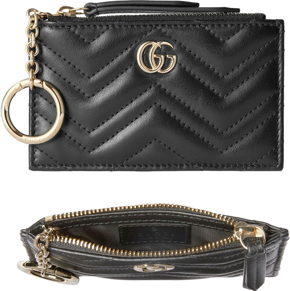 GUCCI グッチ レディースブラックシェブロンキルティングレザーコインケースキーリング付きファスナー小銭入れダブルGロゴ GGマーモント サイフ さいふ モアレ ライニングキーホルダー コンパクトミニウォレット MARMONT1000BK
