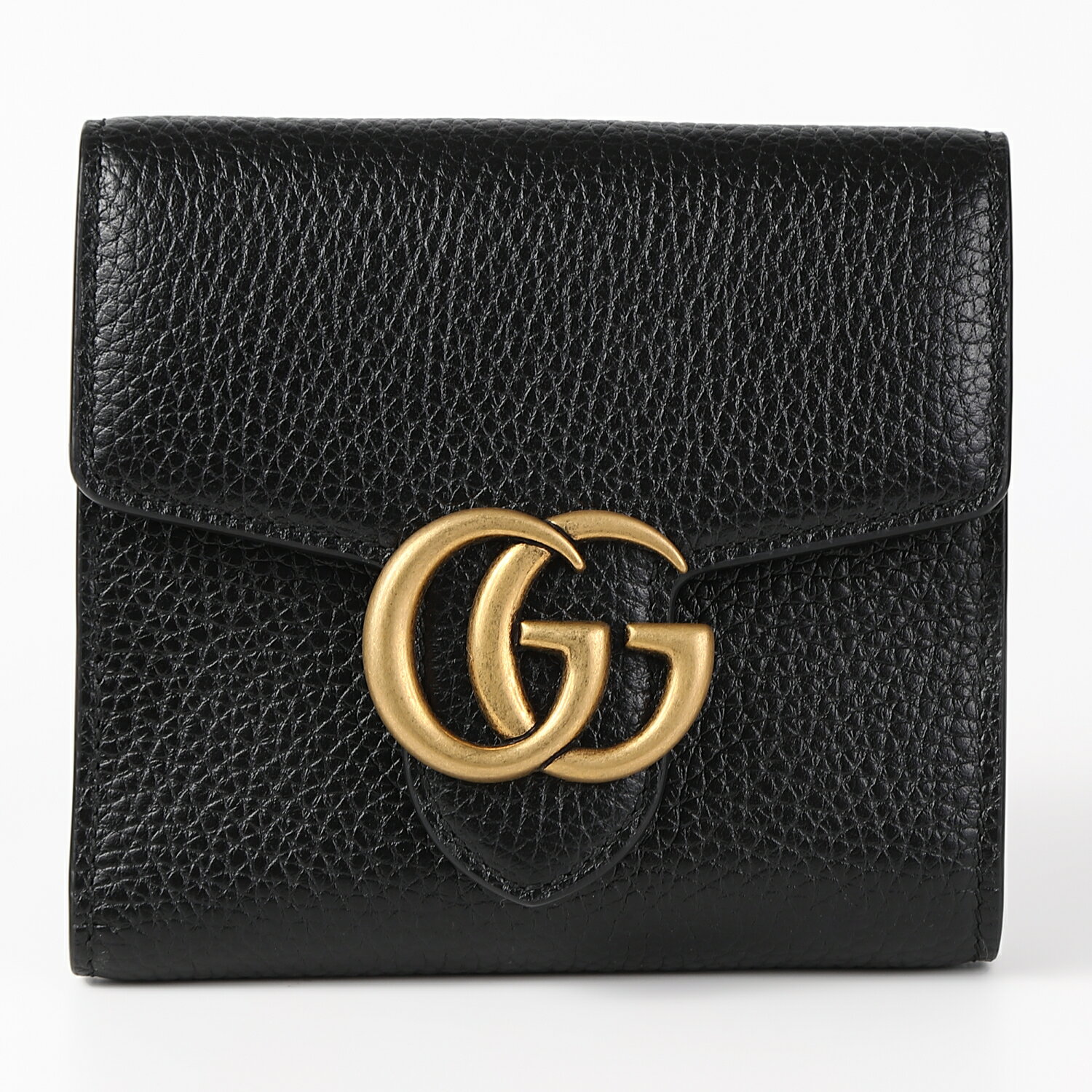 【正規品】グッチ GUCCI 二つ折り財布 GGマーモント レザー ブラック ゴールド金具 コンパクトウォレット メンズ レディース ブランド財布 ギフト プレゼント