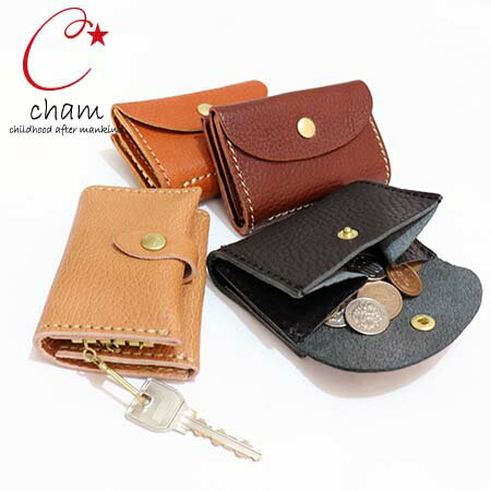 本革 レザー 二つ折り ミニ財布 柔らかい 牛革 小銭がいっぱい入る cham チャム マルチ キーケース【 ハンドメイド レディース さいふ 小銭入れ カード収納 鍵入れ おしゃれ 人気 男性 女性 男女兼用 お父さん お母さん ママ パパ 誕生日 プレゼント ギフト 】開運