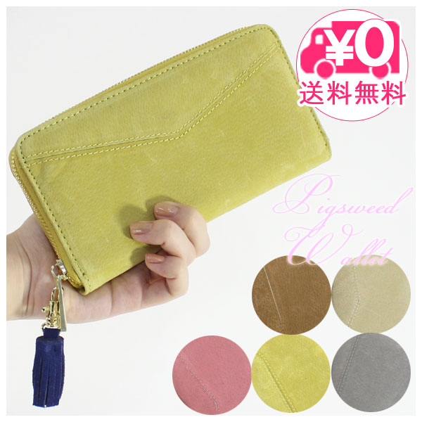 \スーパーセールP11倍+クーポン/ ー定形外送料無料ー ピッグ スエード タッセル付き 本革 長財布= ラウンドファスナー 財布 ウォレット zu-b1284 バイカラー アウトレット