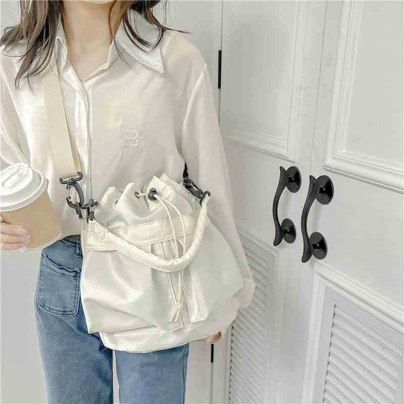 バッグ レディース ショルダーバッグ バケット型 巾着 ギャザー 大容量 軽量 ナイロン 手提げ カジュアル デイリーユース ブラック カーキ ベージュ デザイン性 通気性