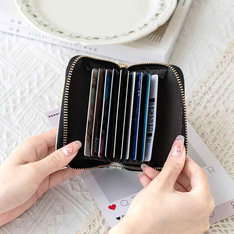 カードケース レディース かわいい 大容量 スキミング防止 超薄型 カード入れ 運転免許証入れ 小銭入れ 花柄 象 カメラ パン リス 犬 雪 タイ 模様