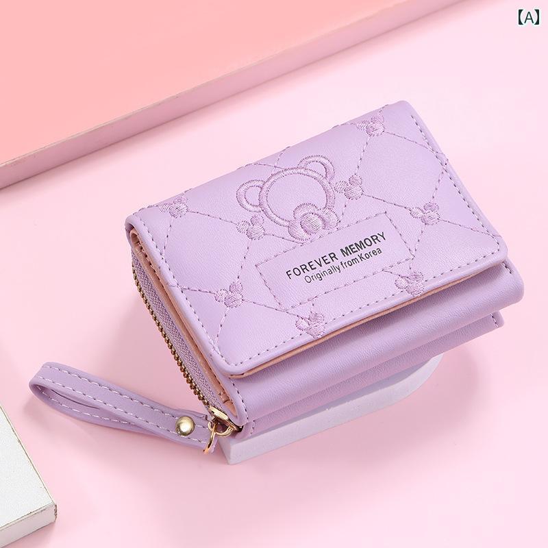 多機能バッグ カードケース 女性 レトロ ファッション カジュアル おしゃれ 綺麗 可愛い ホルダー 刺繍入り 小銭入れ 学生 女子 財布 パープル グリーン ピンク