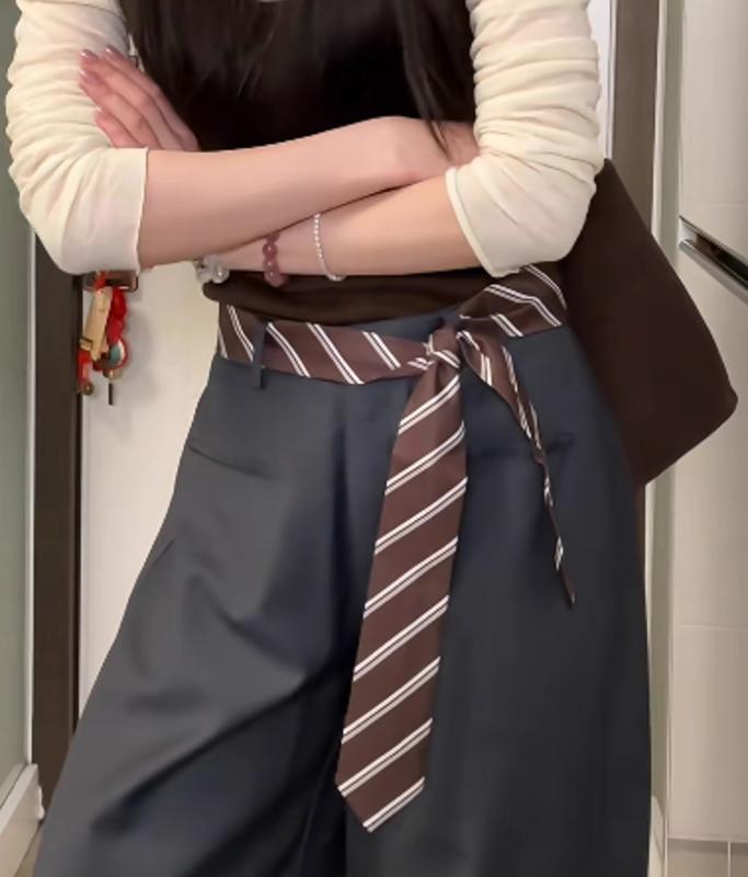 ベルト レディース ブラウン ストライプ柄 ネクタイ スカーフ リボン ウエストマーク レトロ ヴィンテージ風 カジュアル スクール風 学院風 ファッション小物 シャツ ブラウス 襟元アクセサリー 通勤 普段使い おしゃれ