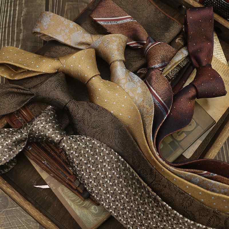メンズ ネクタイ レトロ コーヒー ブラウン レッド 英国 8cm フォーマル ビジネス 手刷り ブゆったりトライプ ダークゴールド 柄