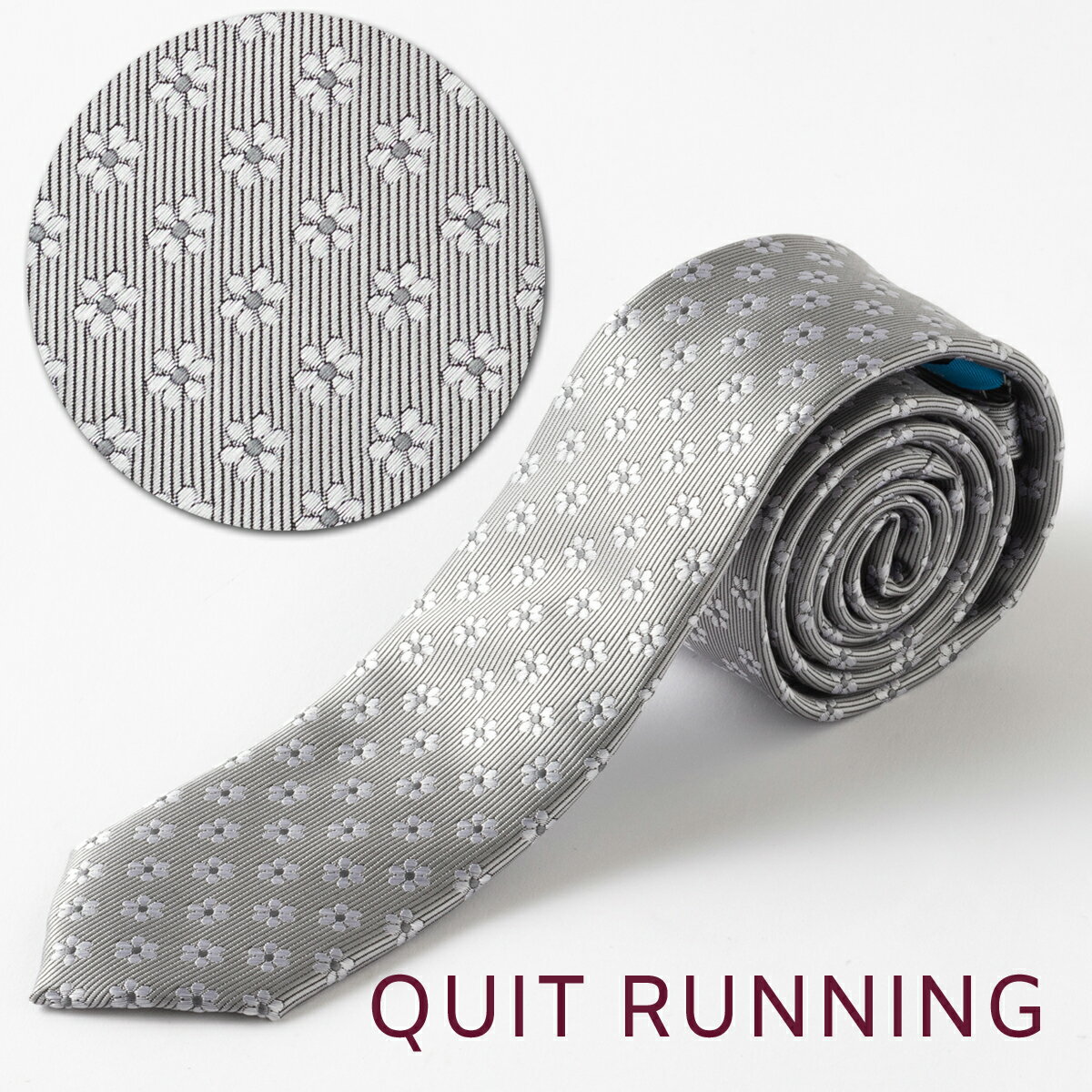 イタリア製シルクネクタイ ナロータイ Quit Running ピュアシルク100% MADE IN ITALY ジオメトリック パターン DOT SILVER ドット シルバー 英国ブランド 男性 クイトランニング ギフト 祝い 卒業式 スーツ フォーマル トラッド