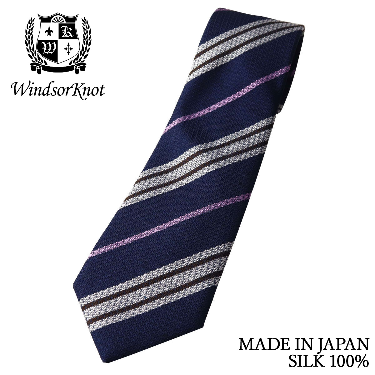 【スーパーSALE半額商品+P5倍】ウィンザーノット ネクタイ ストライプ シルク100% 日本製 ハンドメイド 濃いネイビー メンズ