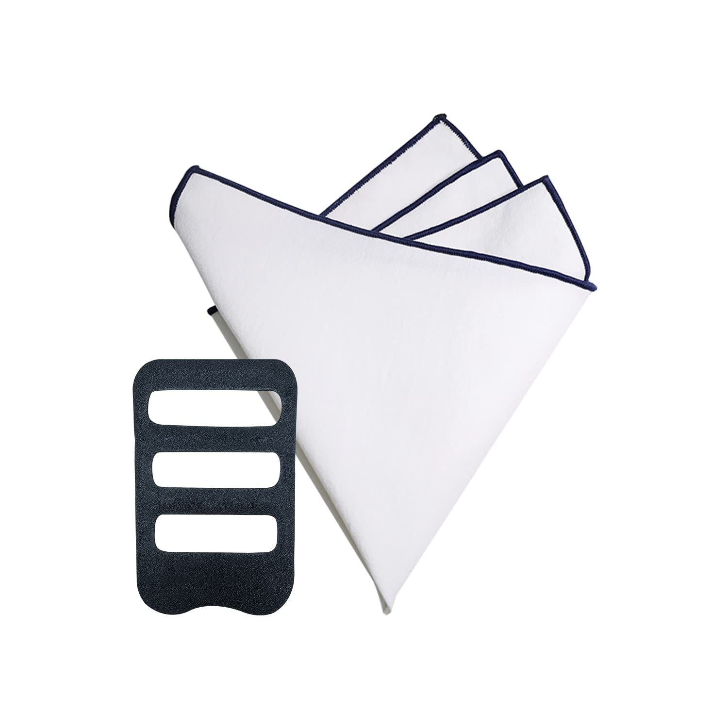 【送料無料】[Beirou] ポケットチーフ リネン 麻 100% 縁取り ホワイト 無地 ハンカチ メンズ 紳士 おしゃれ プレゼント 結婚式 フォーマル ビジネス カジュアル 型崩れ 防止 【ホルダーと折り方ガイド 付き】 色:縁取り:ネイビー、サイズ:31cmx31cm