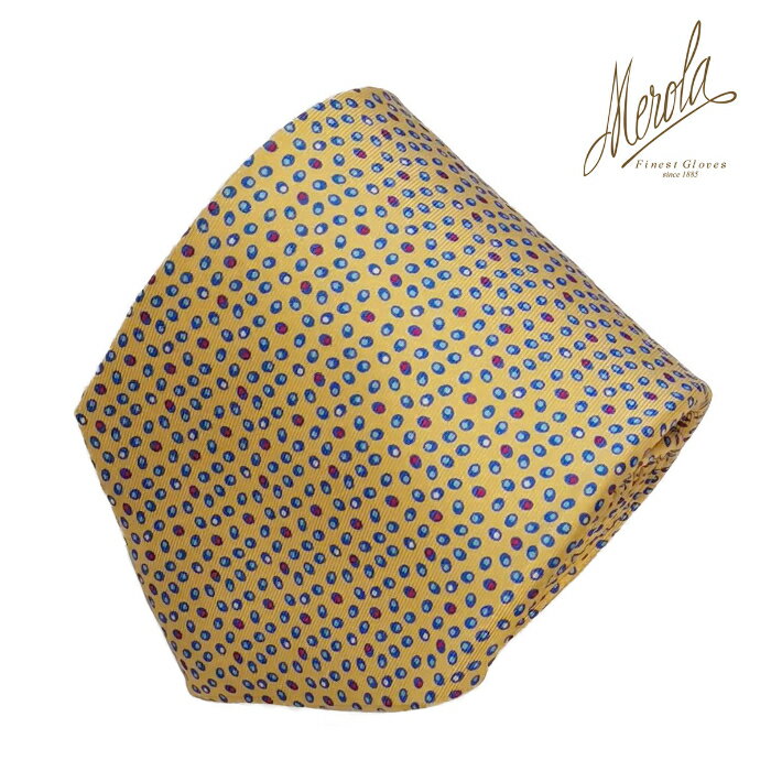 Merolaの代表的なシリーズMerola 素材: シルク100% 色: イエロー×アート系ドット サイズ: 全長約149センチ 大剣約9センチ 原産国: イタリア 対象: メンズ 専用包装により、配送クラシックネクタイの王道。 イタリアで、3人の専門職人が全ての工程を仕上げた、完全ハンドメイドです。 高級シルクを使用しているため、存在感と華やかさは抜群。 約9.0cmと、しっかりとした大剣幅でクラシカルな印象を演出します。 良質な生地だけが持つ、自然修復力。 メローラのネクタイは、厳選されたハリのある生地を使用していることにより、 外した後のシワが出来にくいことが特徴です。 良質なシルクは美しい光沢を持ち、弾力性に優れています。 高品質なネクタイは、耐久性を兼ね備え、美しいまま長く愛用して頂けます。 1870年ナポリにて創業された、クラシコイタリアの老舗、メローラ。 一切の妥協を許さず、上質なネクタイを作り続けています。映画「ローマの休日」を始め、ハリウッド映画でも度々使用されてきました。 現在では、各国の有名政治家やエグゼクティブに愛用されています。クラシコイタリアを日本に広めた、服飾評論家の落合正勝氏が絶賛している事でも有名なブランドです。 メローラの哲学とは、決して流行に左右される事無く、長い歴史の洗練を経て行き着いた、クラシックなスタイルを踏襲し続けるというもの。 十分な長さと、王道クラシックネクタイの特徴である太めの大剣幅が、華やかさと気品・高級感を演出します。コアなネクタイファンにはうってつけの、クラシック感を保ったディティールがメローラの魅力の一つです。 現在も伝統を受け継いだイタリアの専門職人が、ナポリ郊外の自社工場で全ての工程を仕上げ、完全ハンドメイドを実現しています。 創業当初より貫かれているメローラのクラシックスタイルは、ネクタイを追求するファンを惹きつけて離しません。