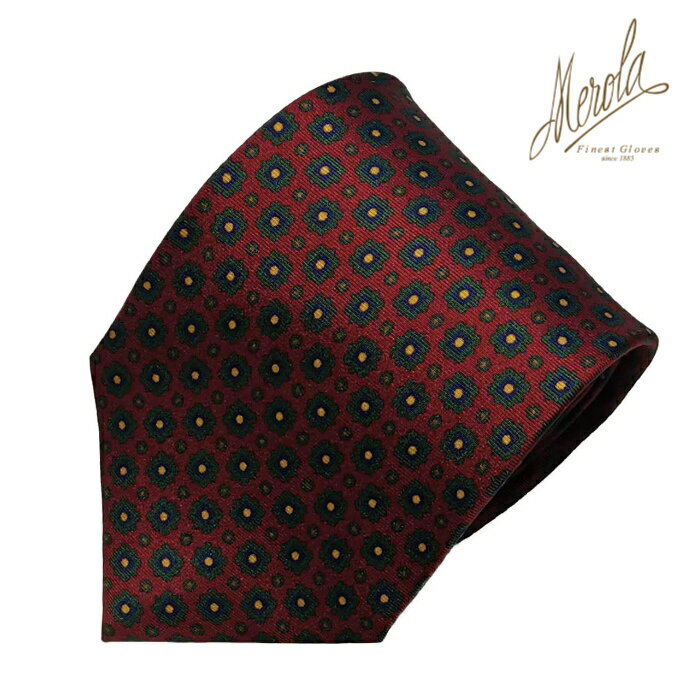 MEROLA ( メローラ ) イタリア製 ネクタイ BLUE LABELシルク素材バーガンディ×小紋(グリーン)全長約 148cm 大剣約 8.5cmメンズ ギフト オールシーズン インポート オシャレ エレガントNo. BL496
