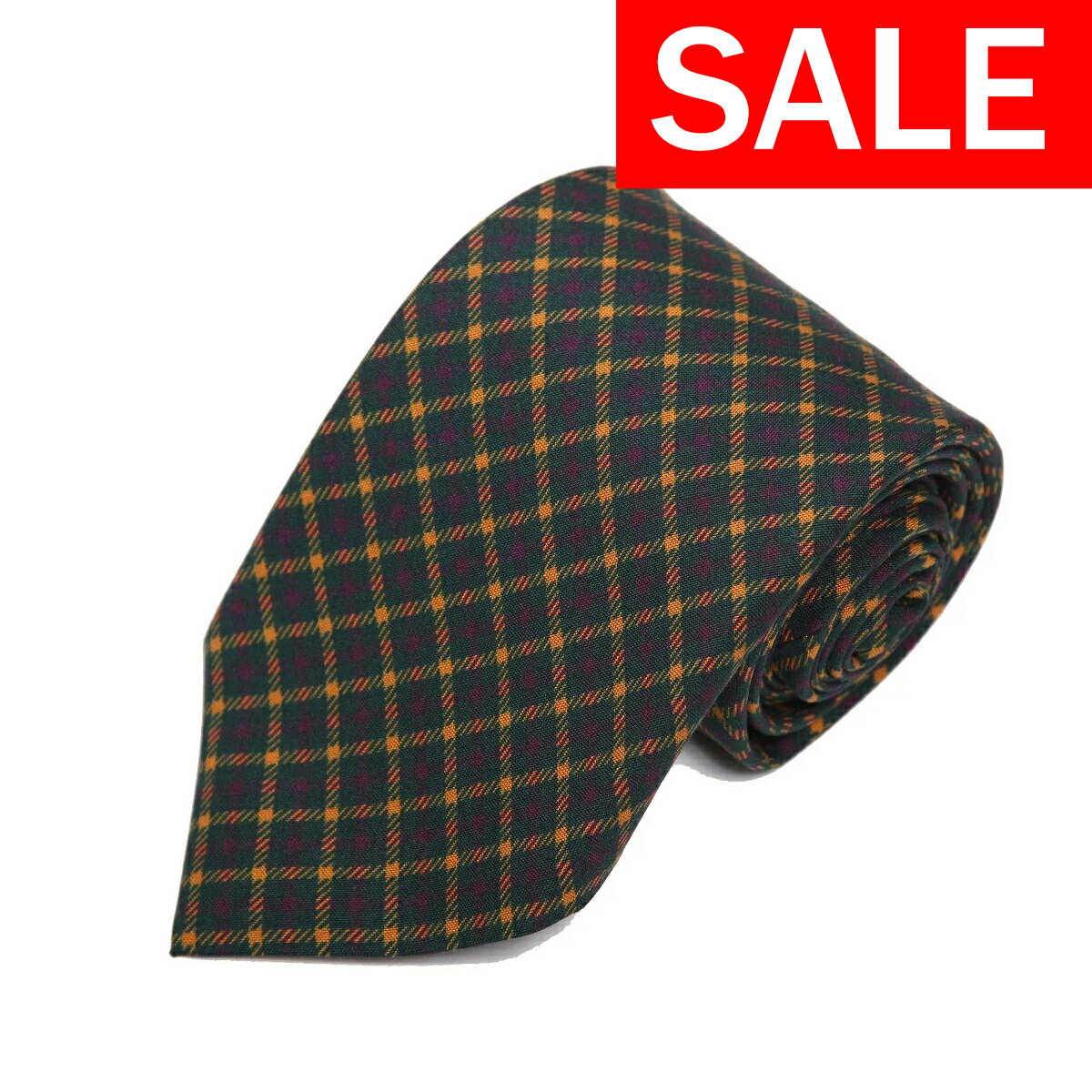 MEROLA ( メローラ ) イタリア製 ネクタイ BLUE LABELシルク素材 グリーン × チェック ( イエロー ・ エンジ ) 全長約148cm 大剣約8.5cmメンズ ギフト オールシーズン インポート オシャレ エレガントNo. BL064
