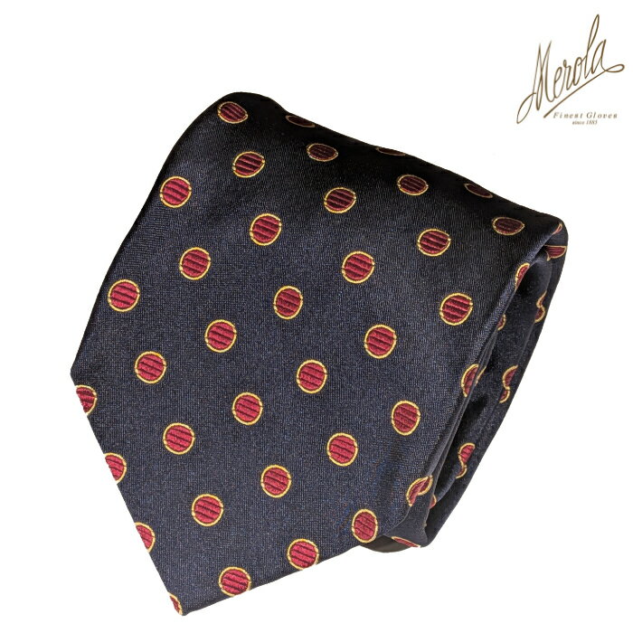 Merolaの新レーベルMerola Blue Label 素材: シルク100% 色: ドット(ネイビー・レッド) サイズ: 全長約148cm 大剣約8.5cm 原産国: イタリア 対象: メンズ 専用包装により、配送Merolaの新レーベル「Merola Blue Label」 イタリアの老舗、メローラ社と共同開発した、当店完全限定デザインのモデルです。 通常Merolaシリーズ同様、縫製までの全工程をイタリアで仕上げています。 大剣を約8cmと、通常シリーズよりも1cm程度細くすることで、コンテンポラリーな印象に仕上げました。 ツヤの有る良質なシルク。 素材はシルクの名産地として知られる、イタリア・コモ湖で生産された良質なシルクを100%使用。 コモ産のシルクは、ツヤとハリの美しさに定評があり、まさにネクタイに適した素材です。 色柄豊富で、遊び心のあるデザインも楽しめます。 1870年ナポリにて創業された、クラシコイタリアの老舗、メローラ。 一切の妥協を許さず、上質なネクタイを作り続けています。映画「ローマの休日」を始め、ハリウッド映画でも度々使用されてきました。 現在では、各国の有名政治家やエグゼクティブに愛用されています。クラシコイタリアを日本に広めた、服飾評論家の落合正勝氏が絶賛している事でも有名なブランドです。 メローラの哲学とは、決して流行に左右される事無く、長い歴史の洗練を経て行き着いた、クラシックなスタイルを踏襲し続けるというもの。 十分な長さと、王道クラシックネクタイの特徴である太めの大剣幅が、華やかさと気品・高級感を演出します。コアなネクタイファンにはうってつけの、クラシック感を保ったディティールがメローラの魅力の一つです。 現在も伝統を受け継いだイタリアの専門職人が、ナポリ郊外の自社工場で全ての工程を仕上げ、完全ハンドメイドを実現しています。 創業当初より貫かれているメローラのクラシックスタイルは、ネクタイを追求するファンを惹きつけて離しません。