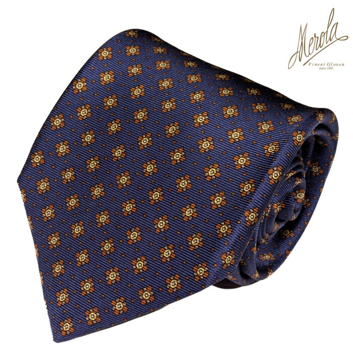 MEROLA ( メローラ ) イタリア製 ネクタイ BLUE LABELシルク素材花柄(ネイビー)全長約 148cm 大剣約 8.5cmメンズ ギフト オールシーズン インポート オシャレ エレガントNo. BL1303